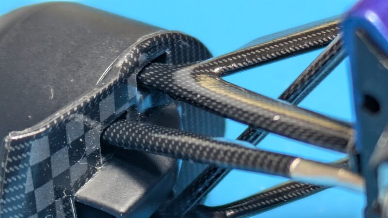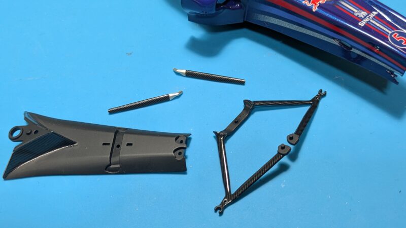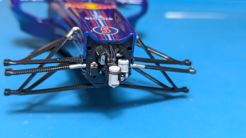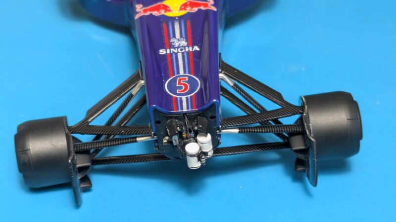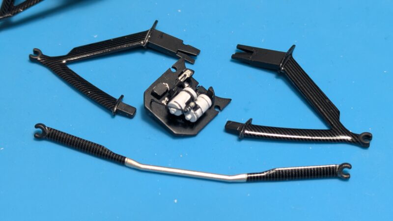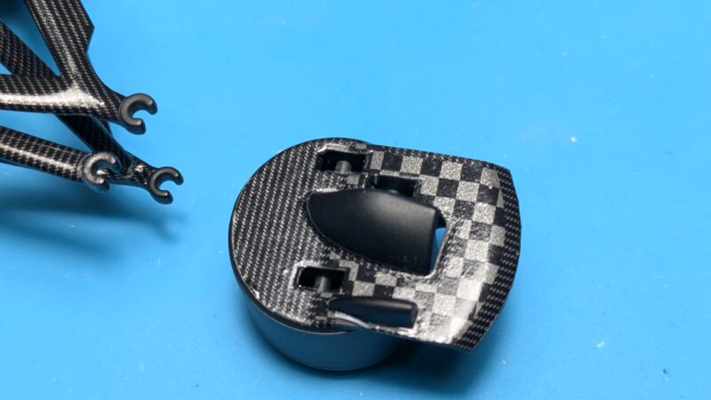 シルバーで塗り分けているアームはステアリングになるので接着しないようにします。