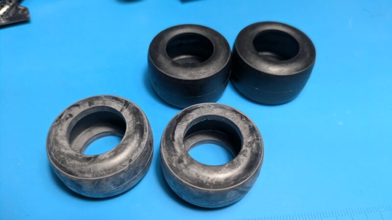 ⇧ キットから取り出した状態のタイヤです。タイヤは2本づつ別の袋に梱包されています。